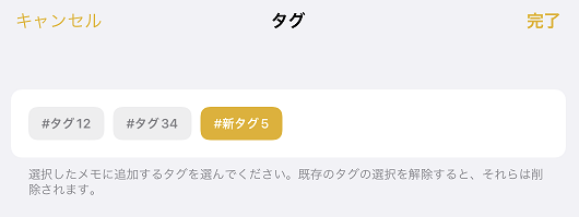メモにタグをつける手順がわかりにくかったので、手順を記載します。