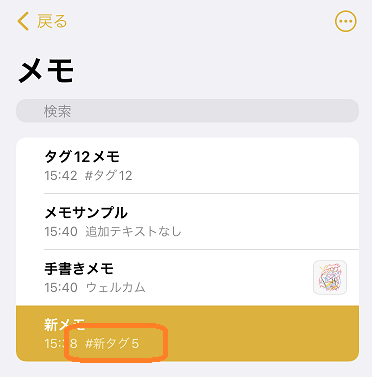 タグをタップすると、そのタグが割り当てられているメモが一覧に表示されます。
