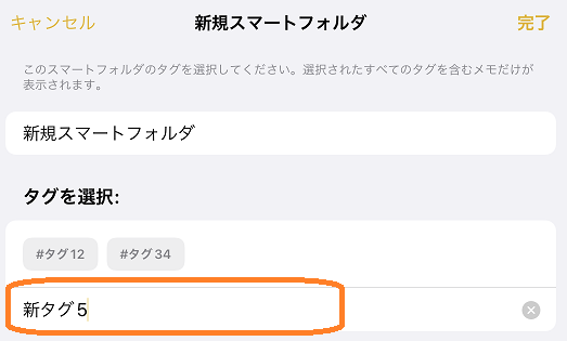 タグの作成は、スマートフォルダを作成するときに、作成できます。