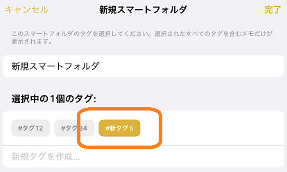 4.タグを付ける画面が表示されますので、付けたいタグを選択して、画面右上の「完了」をタップします。